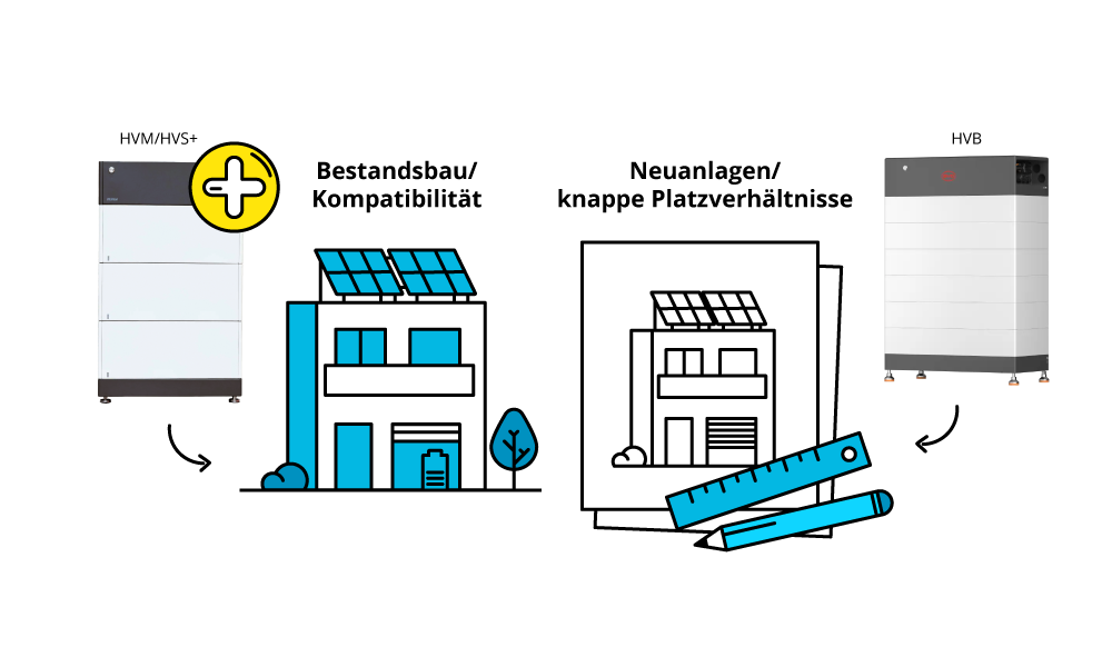 Mit dem Upgrade auf HVM+/HVS+ deckt BYD weiterhin ein breites Anwendungsspektrum ab: Für Einfamilienhäuser eignet sich weiterhin BYD HVS+, wenn es um Speicherlösungen für kleinere Anlagen geht. Der HVB empfiehlt sich hier vor allem dann, wenn du maximale Leistung auf kleinem Raum benötigst oder ein besonders modernes System gefragt ist.