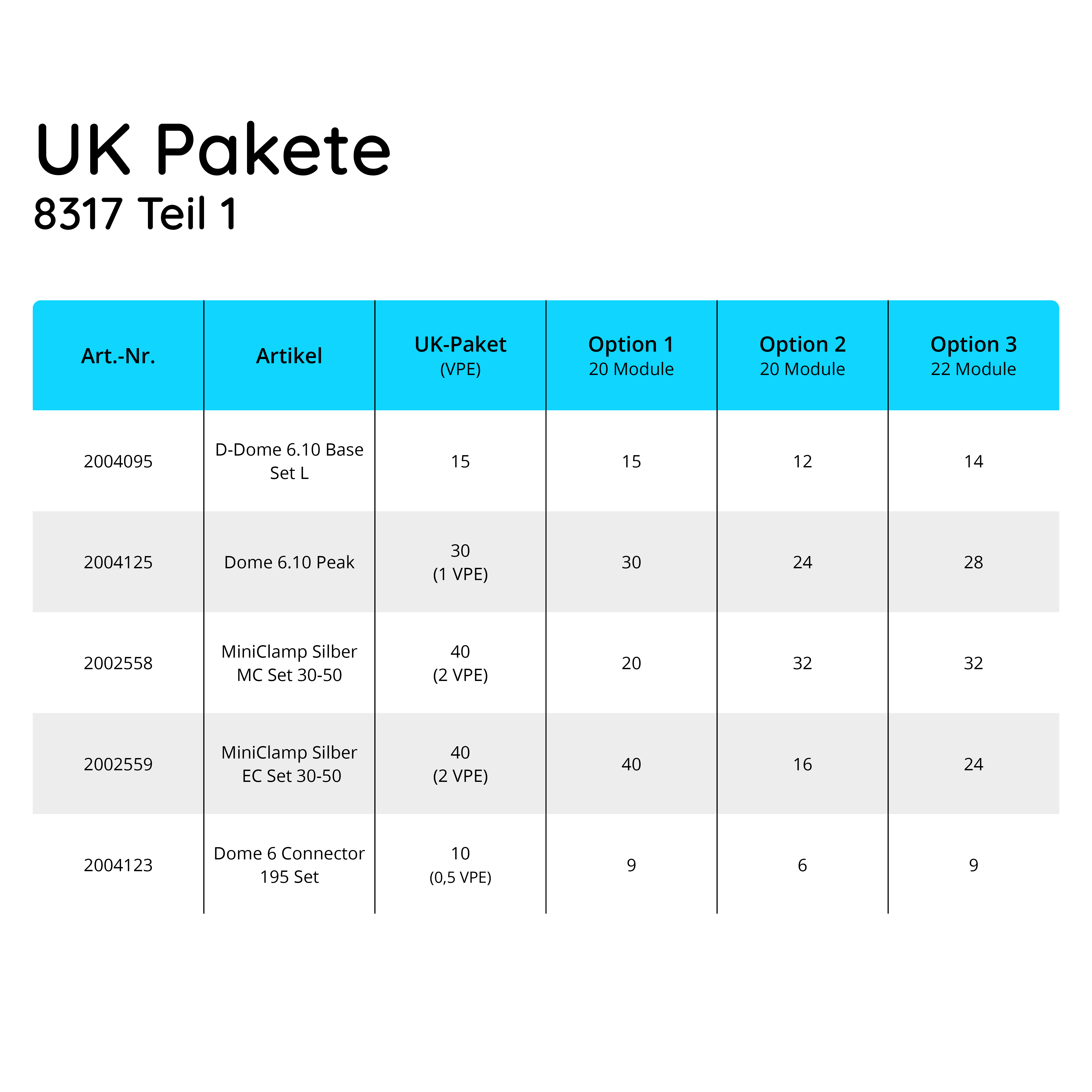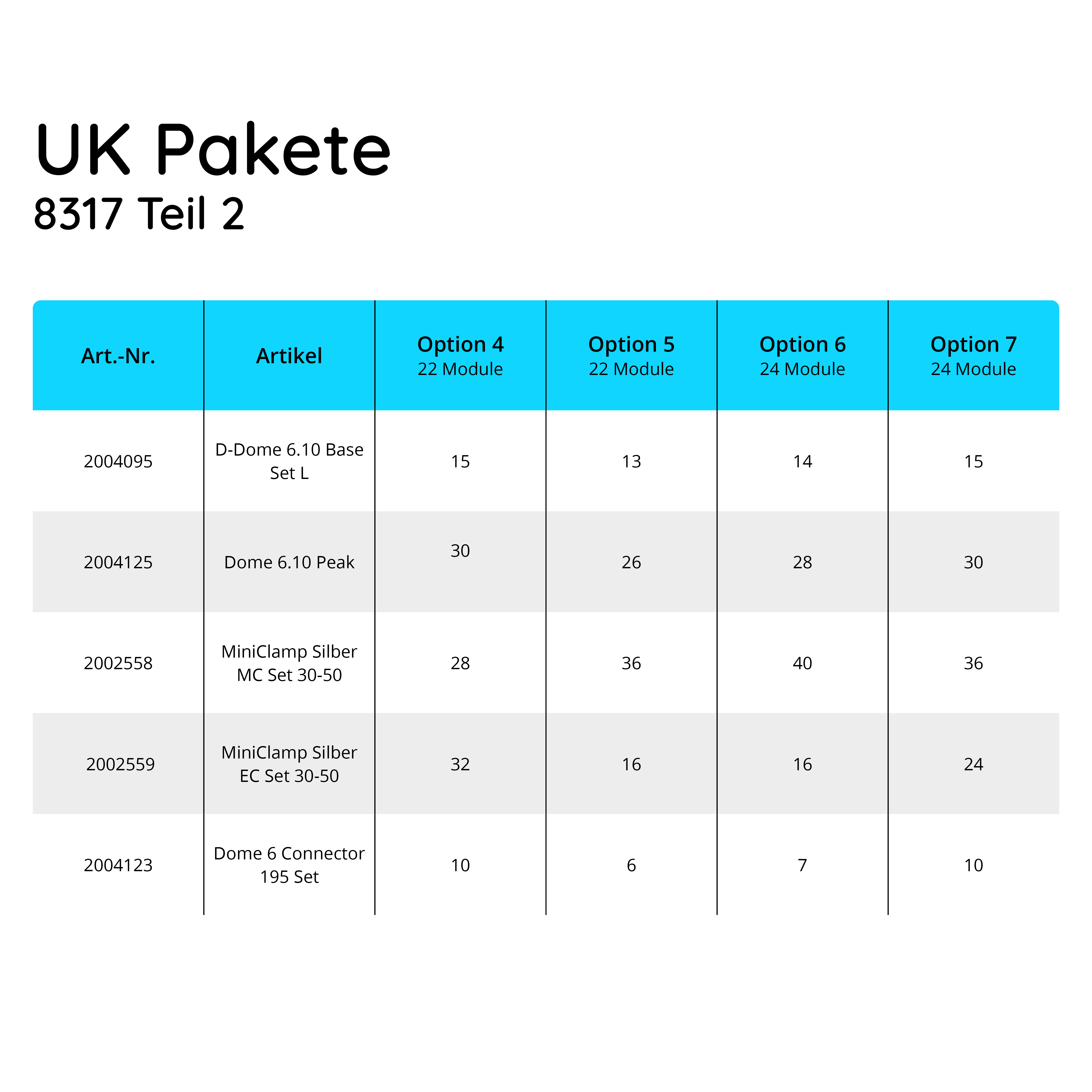 UK Paket für 20 Module von K2, D-Dome, Flachdach, silber
